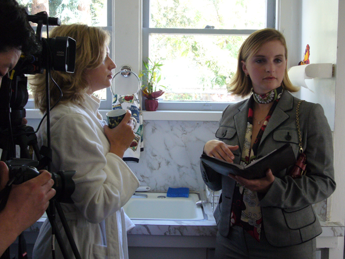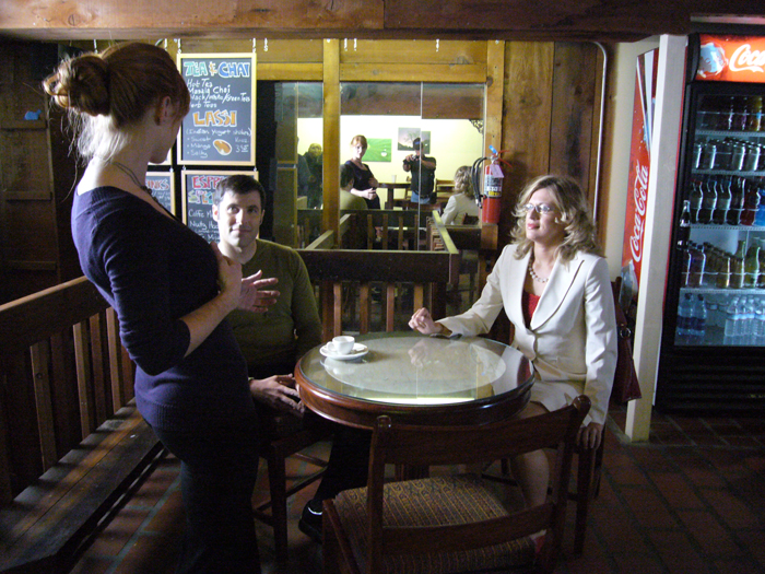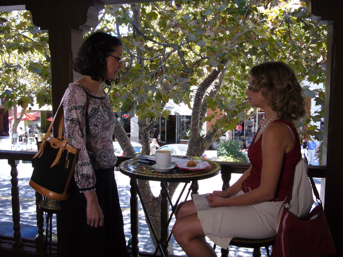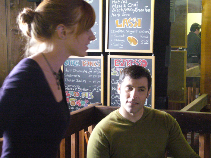 Janie (Linnea George) meets her second blind date, Alex (Jennifer Pauly). Alex is a tall, lanky Literature teacher and misunderstood lesbian that becomes the unfortunate victim of a rushed bridezilla sister. Her hobbies include reading, painting, walking and crossword puzzles.